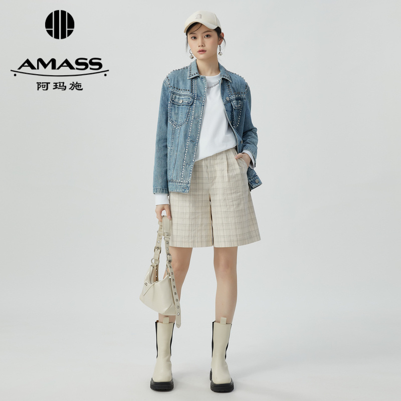 阿玛施AMASS blingbling带葱细闪复古格纹中裤5100437