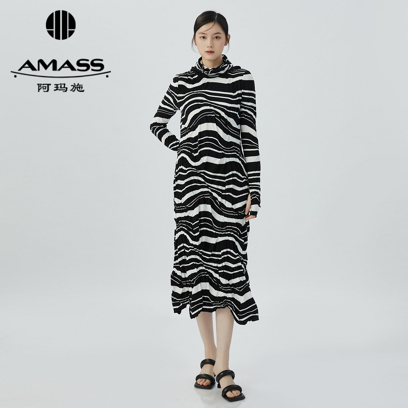 阿玛施AMASS 个性时尚复古条纹长袖带帽连衣裙5500492