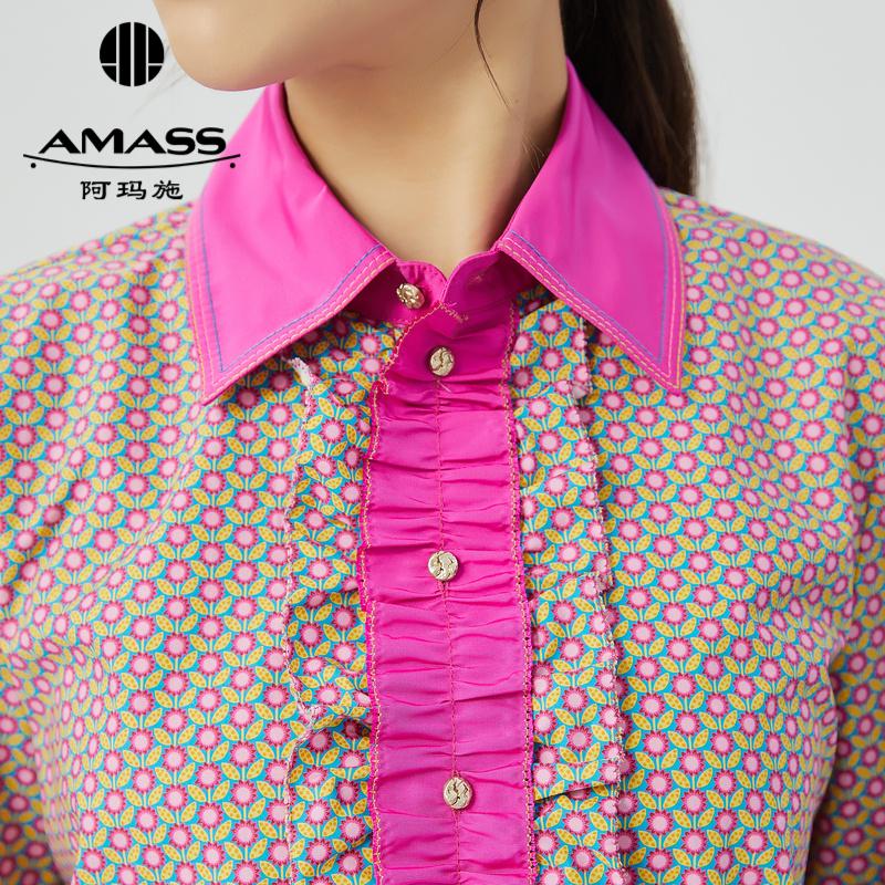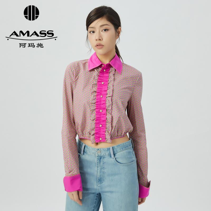 阿玛施AMASS 甜美率性复古印花短款长袖衬衫5300983