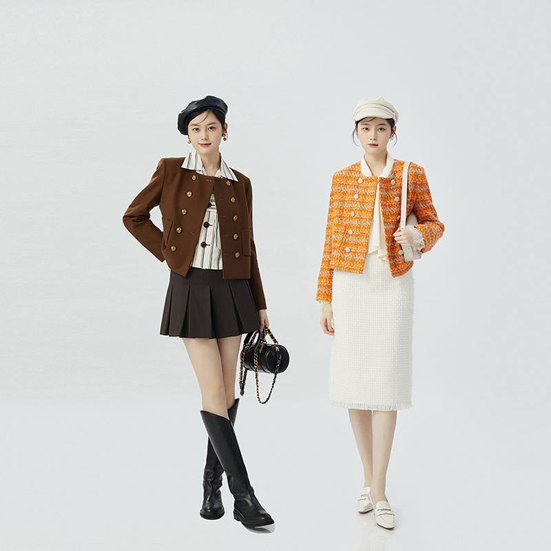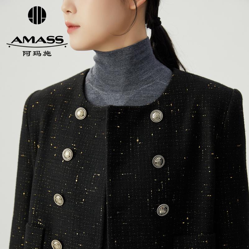 阿玛施AMASS 圆领双排扣经典小香风花呢外套5400837