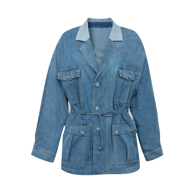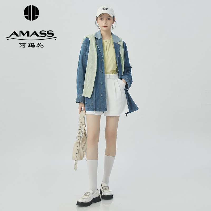 阿玛施AMASS 抽绳设计中长款银灰休闲外套5400350