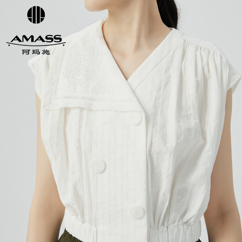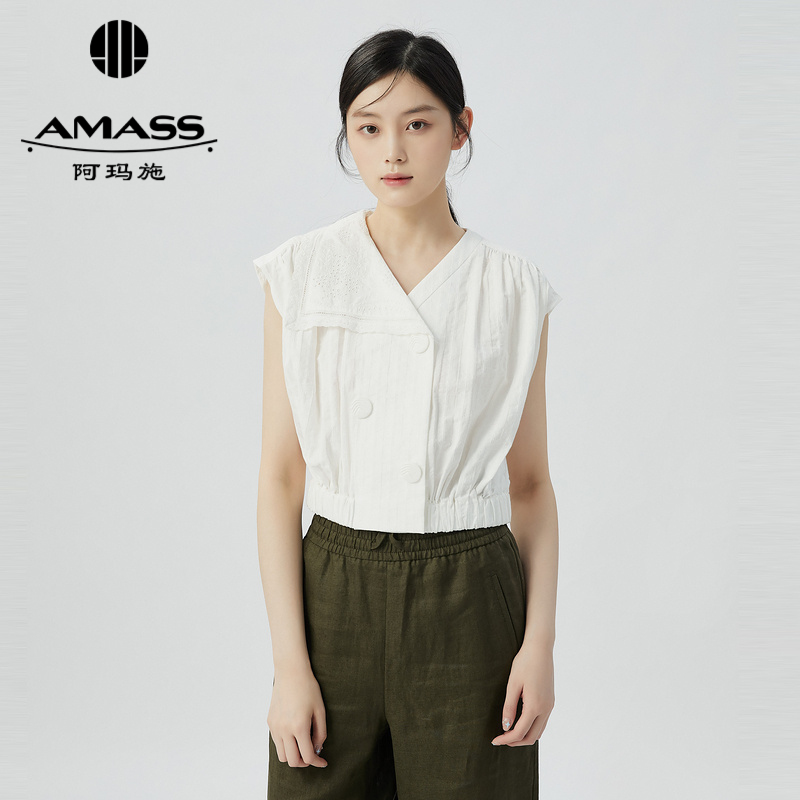 阿玛施AMASS 精致可爱不对称领片设计个性无袖上衣5300929