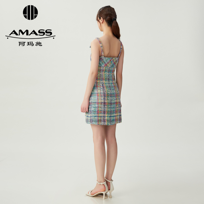 阿玛施AMASS 甜美俏皮芭比格纹无袖洋装5500489