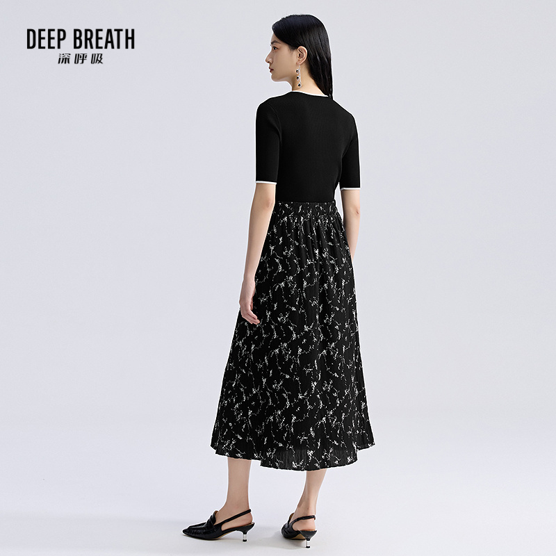 DEEP BREATH深呼吸女装 复古松紧腰碎花中长款高腰半身裙A200337