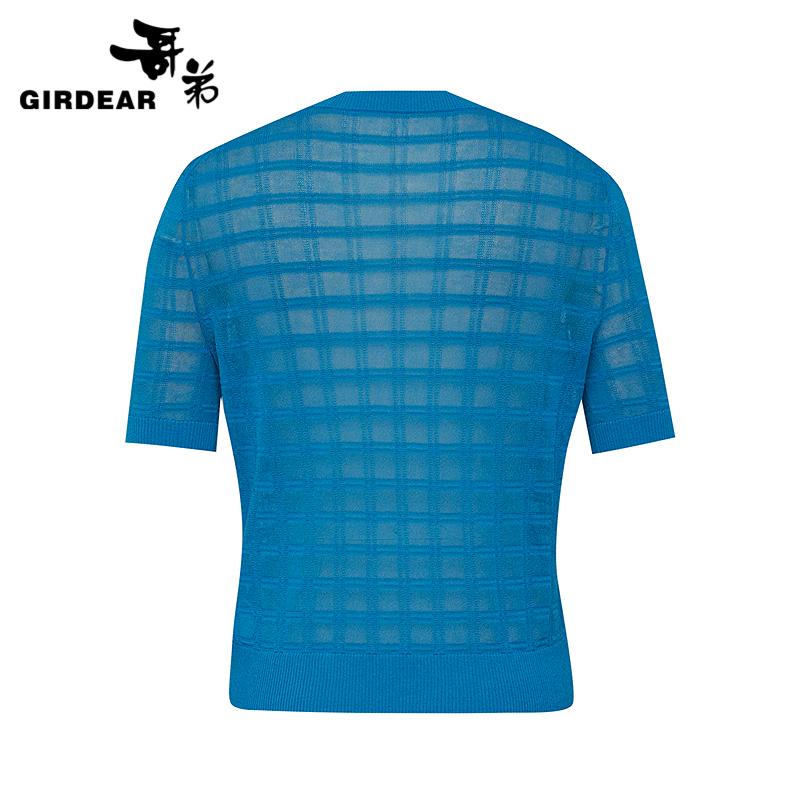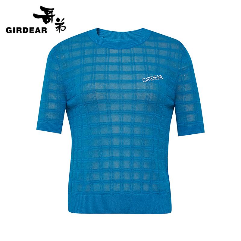 哥弟 简洁字母logo圆领百搭短袖套头针织衫138053