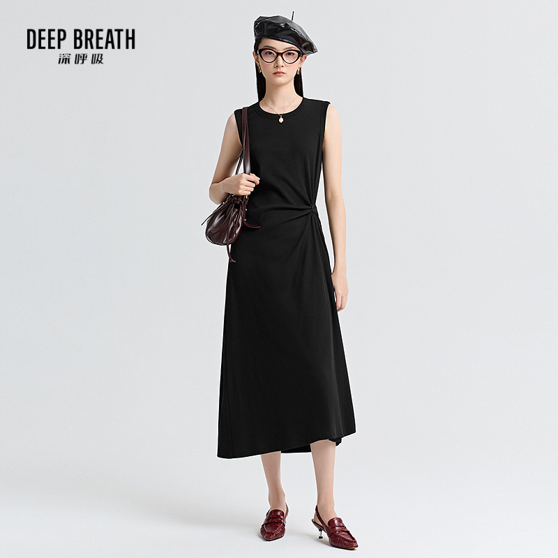 DEEP BREATH深呼吸女装 圆领无袖罗纹坑条收腰连衣裙长裙A500519