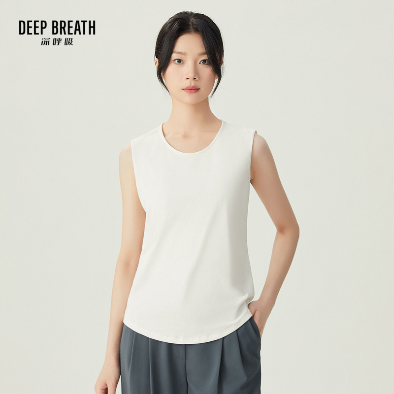 DEEP BREATH深呼吸女装 休闲纯色无袖圆领下摆弧度T恤上衣A301440