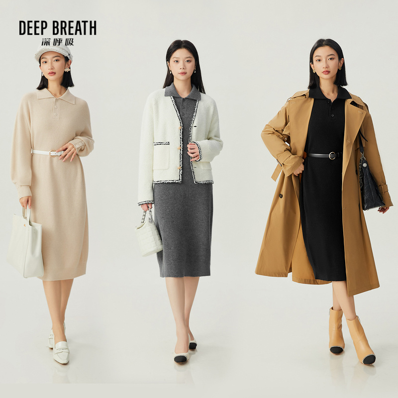 DEEP BREATH深呼吸女装 廓形POLO领灯笼袖针织洋装连衣裙A500319