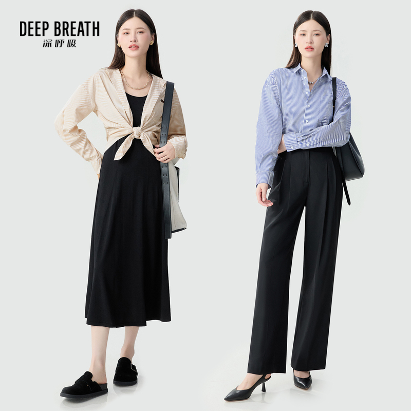 DEEP BREATH深呼吸女装 时尚休闲条纹单口袋长袖衬衫A301613