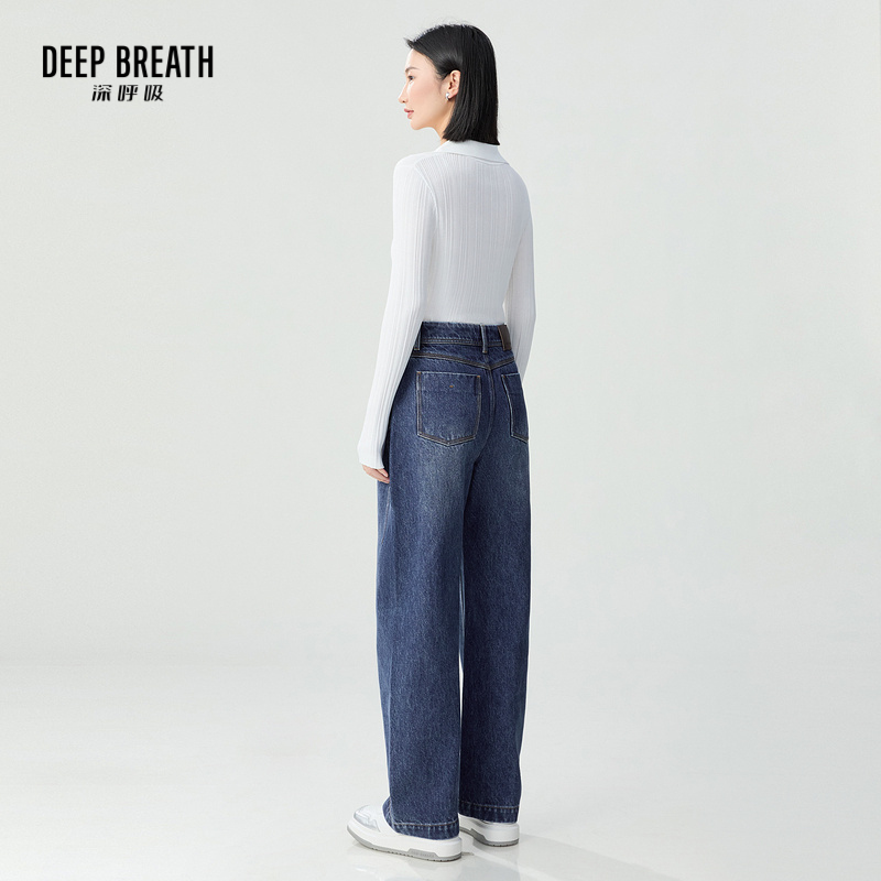 DEEP BREATH深呼吸女装 重磅真皮皮牌休闲镰刀牛仔裤A100378