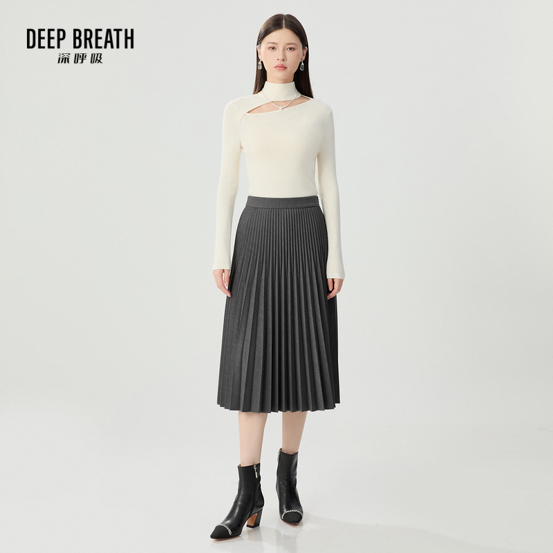 DEEP BREATH深呼吸女装 可水洗中长款羊毛百褶羊毛裙A200311
