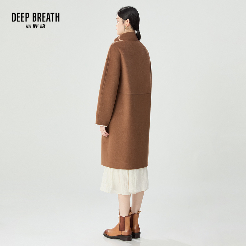 DEEP BREATH深呼吸女装 通勤解构立领羊毛桑蚕丝大衣A401177