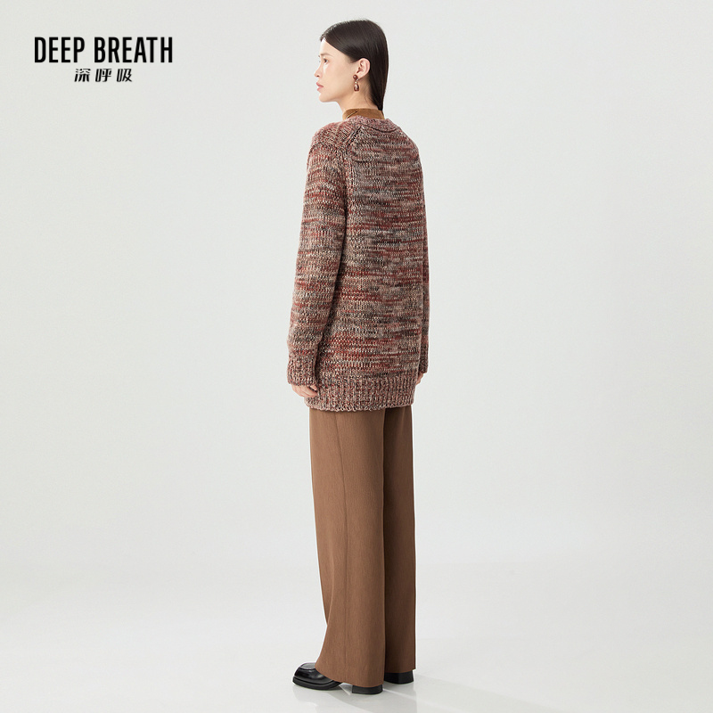 DEEP BREATH深呼吸女装 羊毛V领花纱宽松开衫针织衫A401202