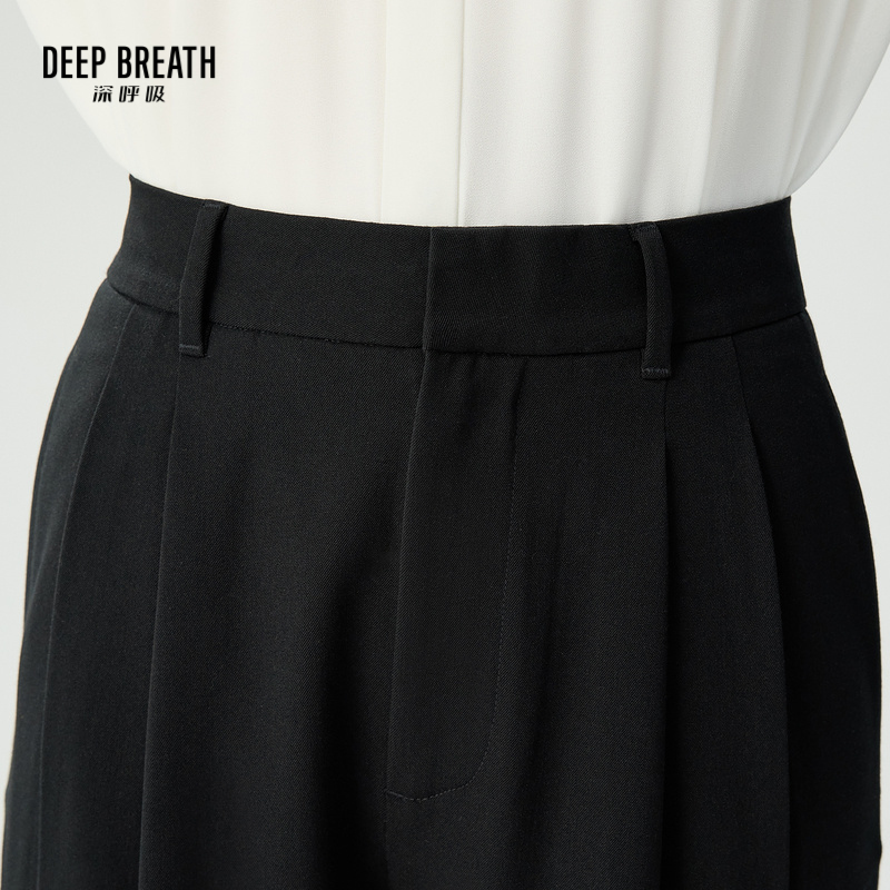 DEEP BREATH深呼吸女装 高腰压褶休闲长裤直筒西裤A100414